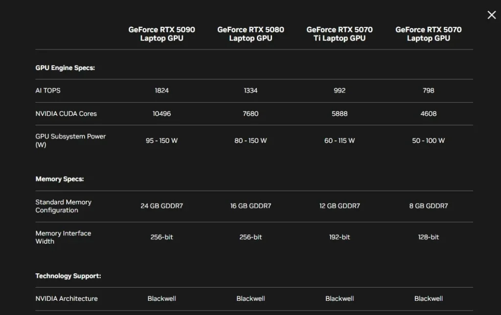 Anche il segmento dei Notebook vedrร grandi miglioramenti con l’introduzione della serie RTX 5000 Laptop. Le GPU mobili basate sulla nuova architettura offriranno: